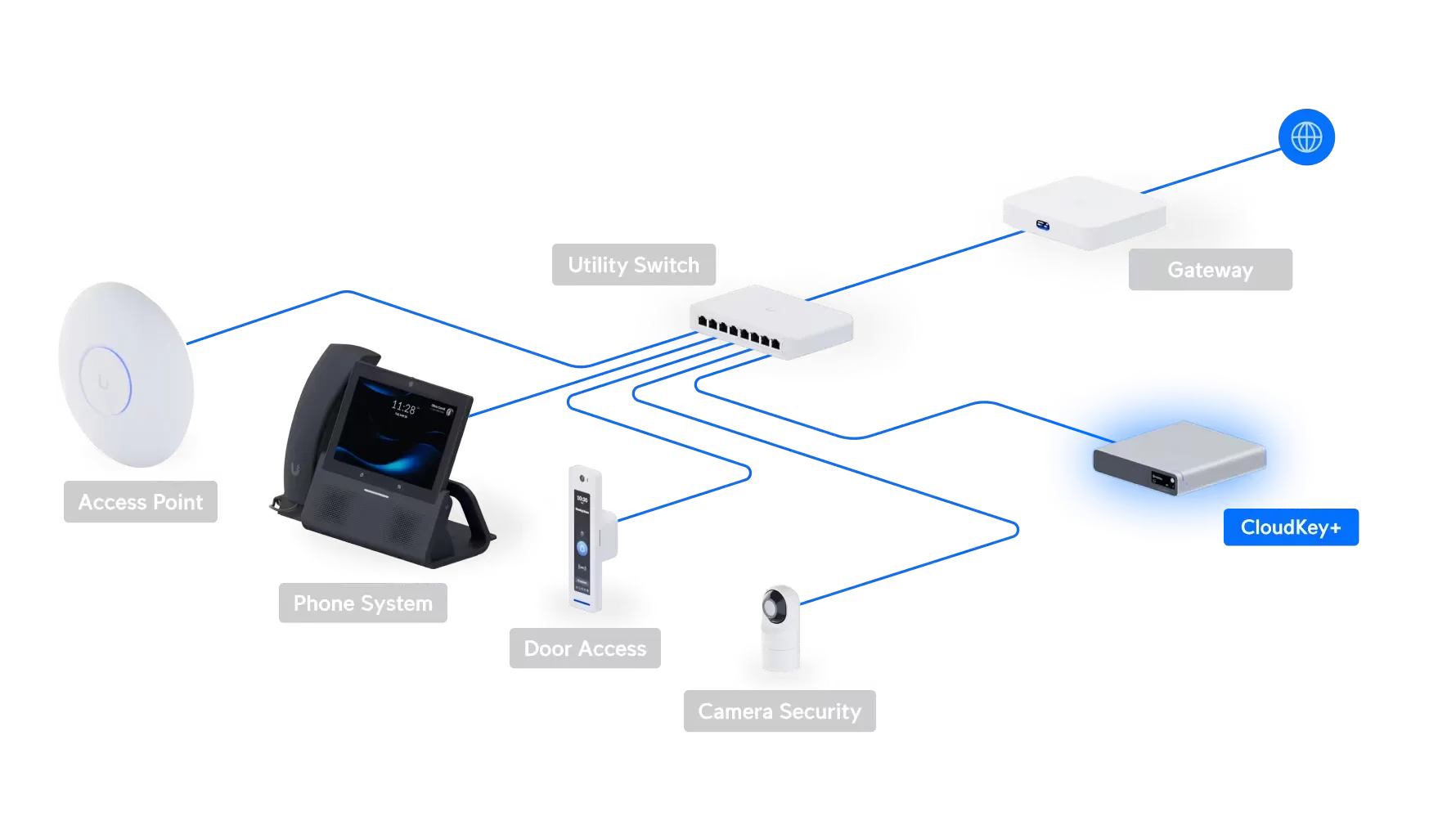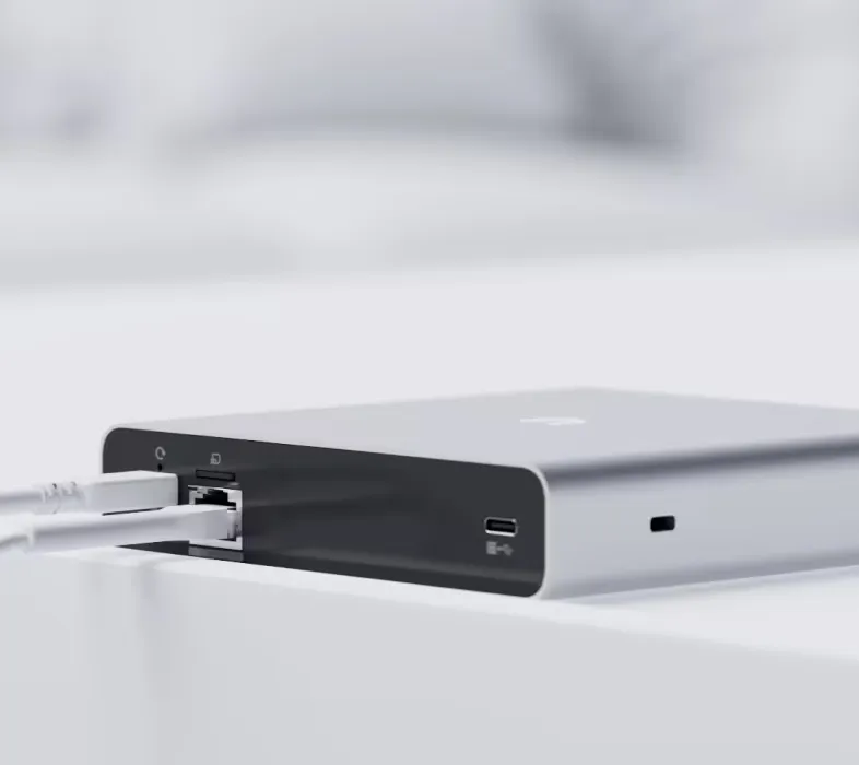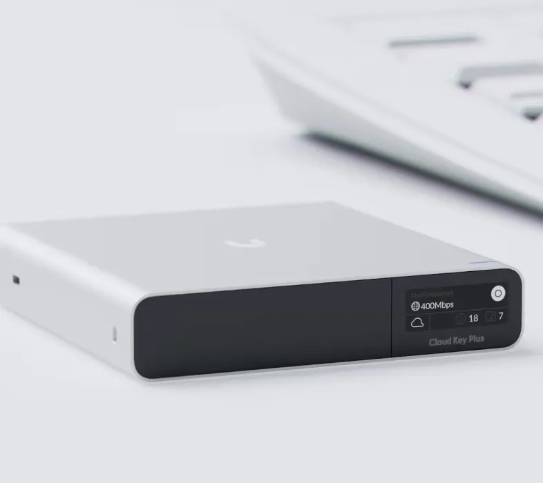 The UniFi CloudKey+ is a compact UniFi Console that connects directly to the Site Manager at unifi.ui.com, providing powerful, multi-application site management. It hosts the full UniFi application suite, including Network, Protect, Access, and Talk, enabling centralised control over your UniFi deployment.